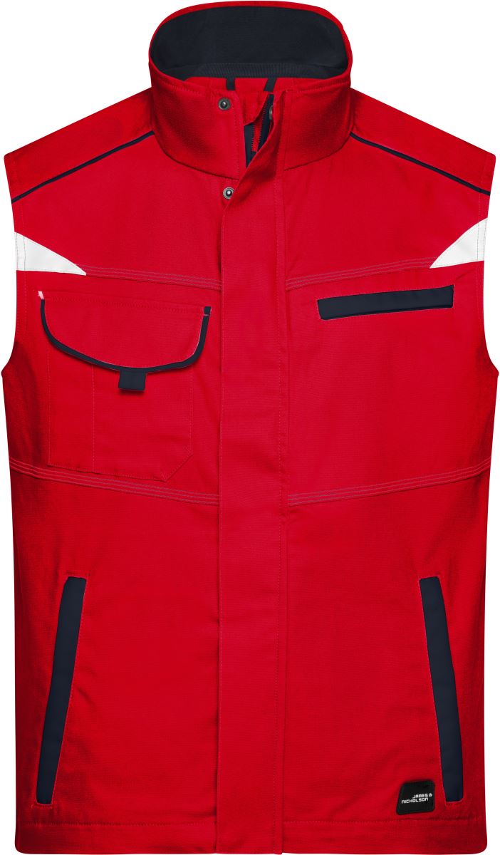Ergonomische Passform durch Elasthananteil, Stehkragen innen mit weichem Fleece, durchgehend unterlegter Reißverschluss mit Windschutzblende und Kinnschutz, verdeckte Verarbeitung an Knöpfen und Reißverschlüssen, Brusttasche mit Klappe und Klettverschluss, Seitentaschen, Brusttasche und Innentasche mit Reißverschluss, Handytasche innen, elastische leichte Canvas-Qualität, Reflexelemente (ohne Schutzfunktion) im Vorder- und Rückenteil, 60° waschbar, trocknergeeignet bei niedriger Temperatur