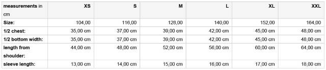 Größentabelle