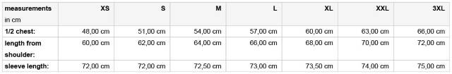 | Größe | XS, S, M, L, XL, XXL, 3XL |