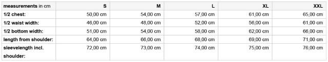 | Größe | S, M, L, XL, XXL |