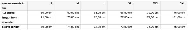 | Größe | S, M, L, XL, XXL, 3XL |