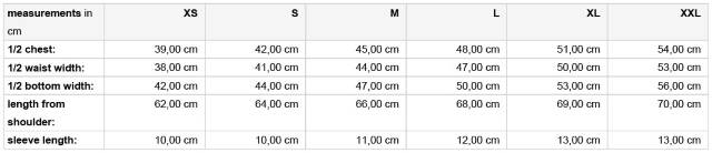| Größe | XS, S, M, L, XL, XXL |