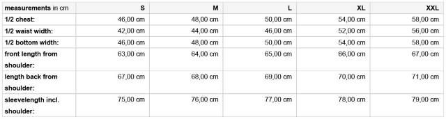 Größentabelle