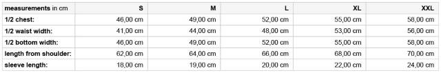 Größentabelle