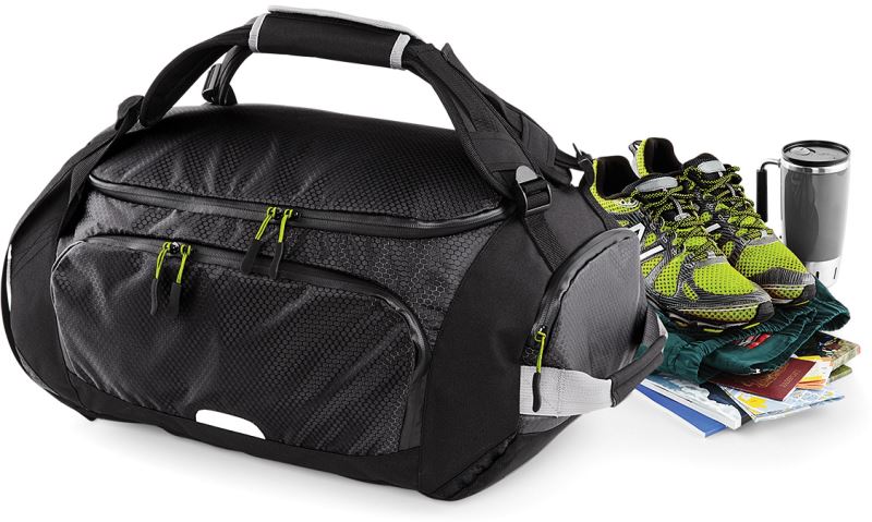 Wasserabweisendes Design, Tragegriff gepolstert, Boden gepolstert, Fronttasche mit Netzfächern innen, gepolstertes Hauptfach, isoliertes Nass-Fach mit Reißverschluss, ideal als Handgepäck für Flugreisen, kann als Rucksack oder per Hand getragen werden, leicht und strapazierfähig, reflektierende Details (ohne Schutzfunktion), TearAway Label, Fassungsvermögen: 30l, Maße: 54x27x34cm, nur mit einem Schwamm reinigen, nicht waschen