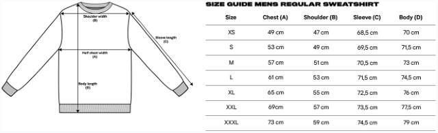 Schlagwörter: 2x2 Rippstrickbündchen an Hals, Ärmeln und Saum, Gerader Schnitt, Halbmond im Nacken, innen angeraut, Kettenstich an der Schulternaht, Nackenband, neutrales Größenlabel, nicht chemisch reinigen, nicht trocknergeeignet, Rundhalsausschnitt, weicher Griff